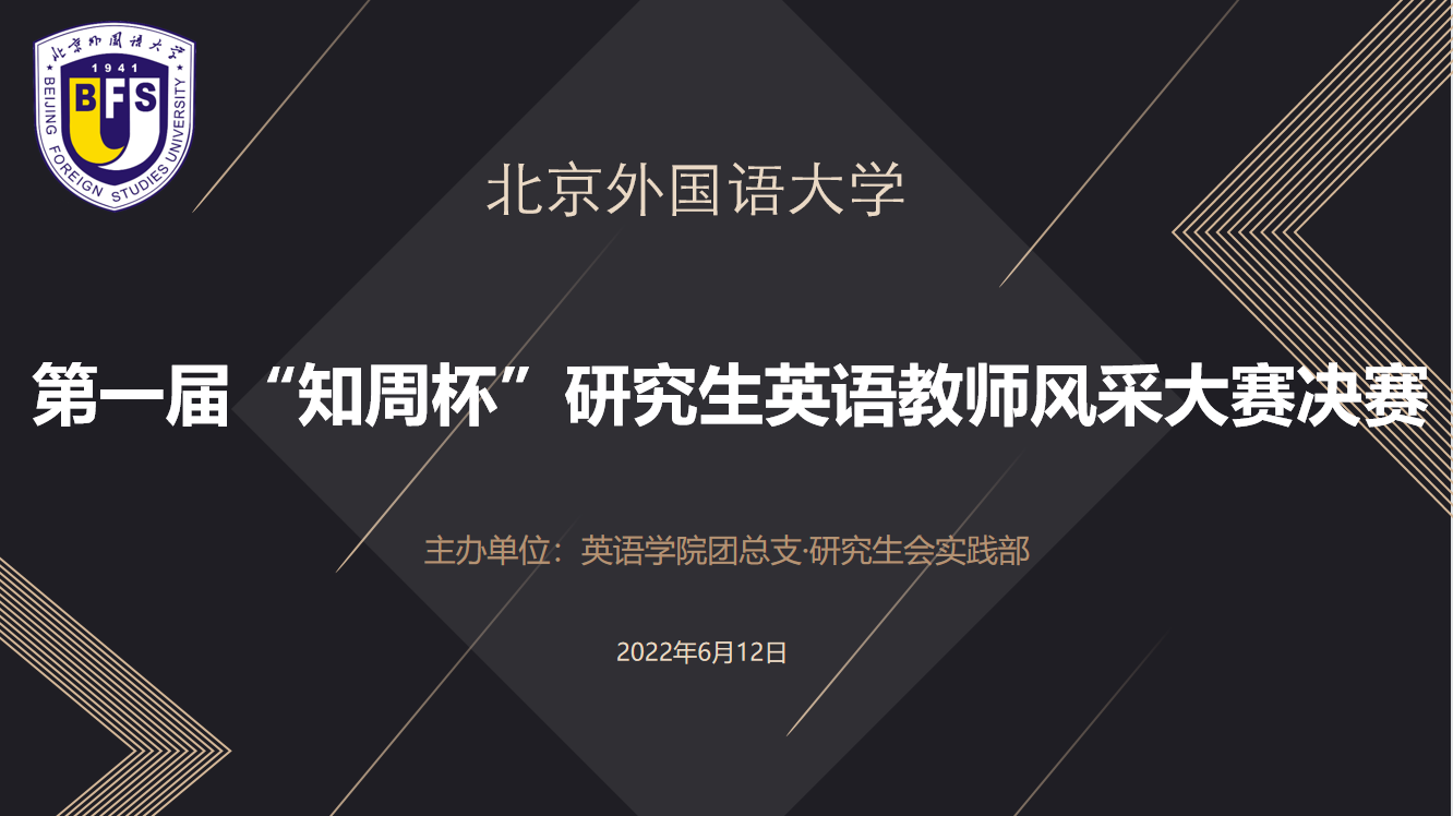 2022年6月12日上午,第一届“知周杯”研究生英语教师风采大赛决赛成功举办。本次大赛由437ccm必赢国际官方网站437ccm必赢国际官方网站研究生团总支主办,437ccm必赢国际官方网站团总支研究生会实践部承办。437ccm必赢国际官方网站437ccm必赢国际官方网站党支部书记王明欣出席本次活动。437ccm必赢国际官方网站437ccm必赢国际官方网站林岩教授、中国外语与教育研究中心徐浩研究员担任决赛评委老师。