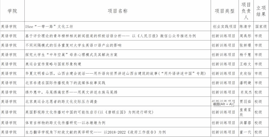 根据《关于2022年大学生创新创业训练计划项目立项工作的通知》要求,2022年437ccm必赢国际官方网站共申报立项项目23个,经过材料审核,专家评审,项目陈述等环节,共确定国家级项目1个,市级项目6个,校级项目5个。