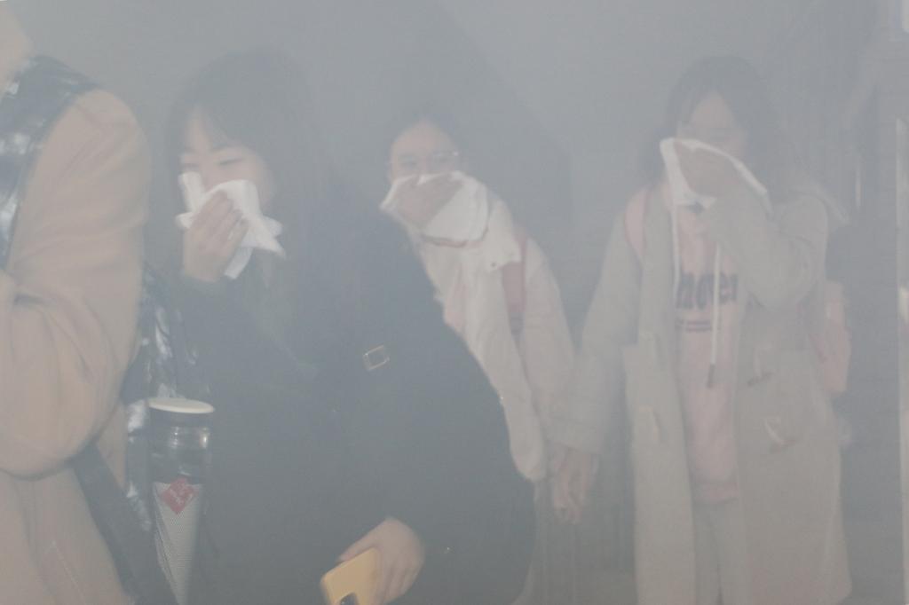 为确保此次演习活动顺利进行,437ccm必赢国际官方网站制定了详细的疏散方案并对工作人员进行了培训。12点05分,火灾报警声在437ccm必赢国际官方网站楼响起,模拟烟雾在楼内弥漫,12名各楼层负责老师迅速到达自己的岗位,组织学生与老师安全有序远离着火点进行疏散。楼内560余名学生与老师在各楼层负责老师的引导下,弯腰贴墙,用毛巾捂住口鼻,快速撤离到指定安全地带。学校微型消防站接警后第一时间赶赴现场,搜救组进楼搜救人员,灭火救援组利用室外消火栓出真水模拟灭火。