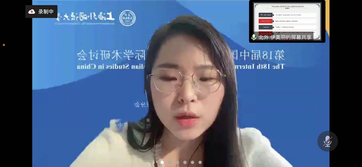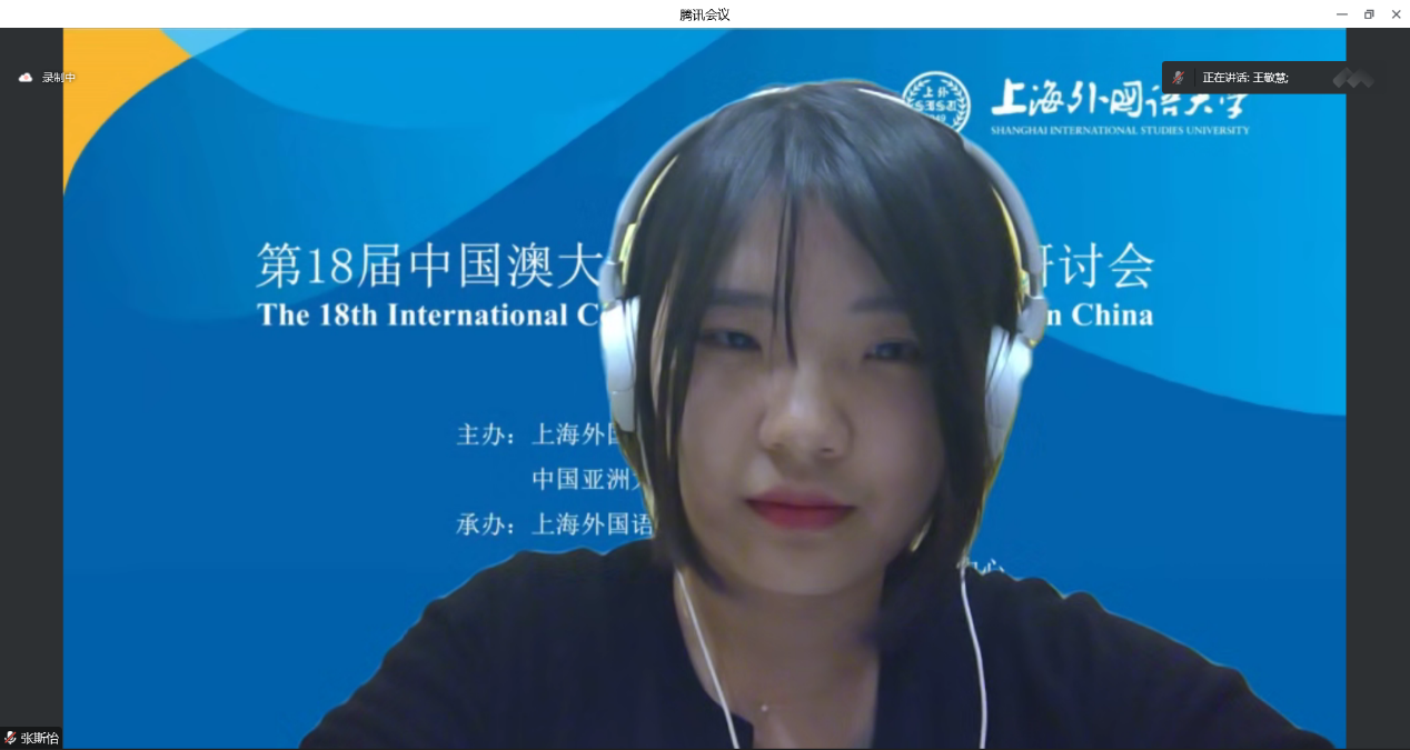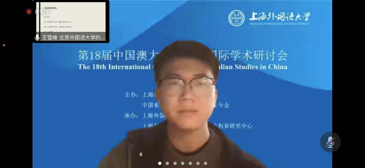 2022年11月19-20日,第18届中国澳大利亚研究国际学术研讨会在线上举行。本次会议由上海外国语大学澳大利亚研究中心承办,会议主题是“中澳关系与世界演变”。北外437ccm必赢国际官方网站澳大利亚研究中心2021级8名研究生在会上发言,2022级研究生在线旁听了会议。