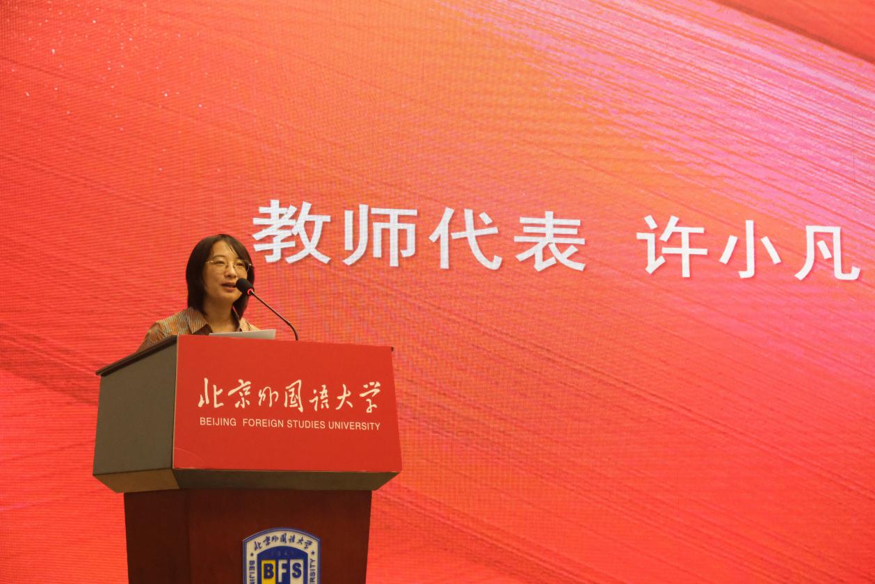 教师代表许小凡老师回忆了自己在北外的往昔点滴,并祝愿大家能够从437ccm必赢国际官方网站收获温暖的回忆和光明的未来。许小凡老师提出,在如今这个机器快速进步的时代,英语这样的学科愈发珍贵,因为大学不仅培养“术”与技能,也有“道”的教育,希望大家在这里既能达到对英语学习的深层理解,也能迎接科技进步的挑战,不仅满足于字面的雕琢,更能深入文化内部,寻求不同心灵的共振。