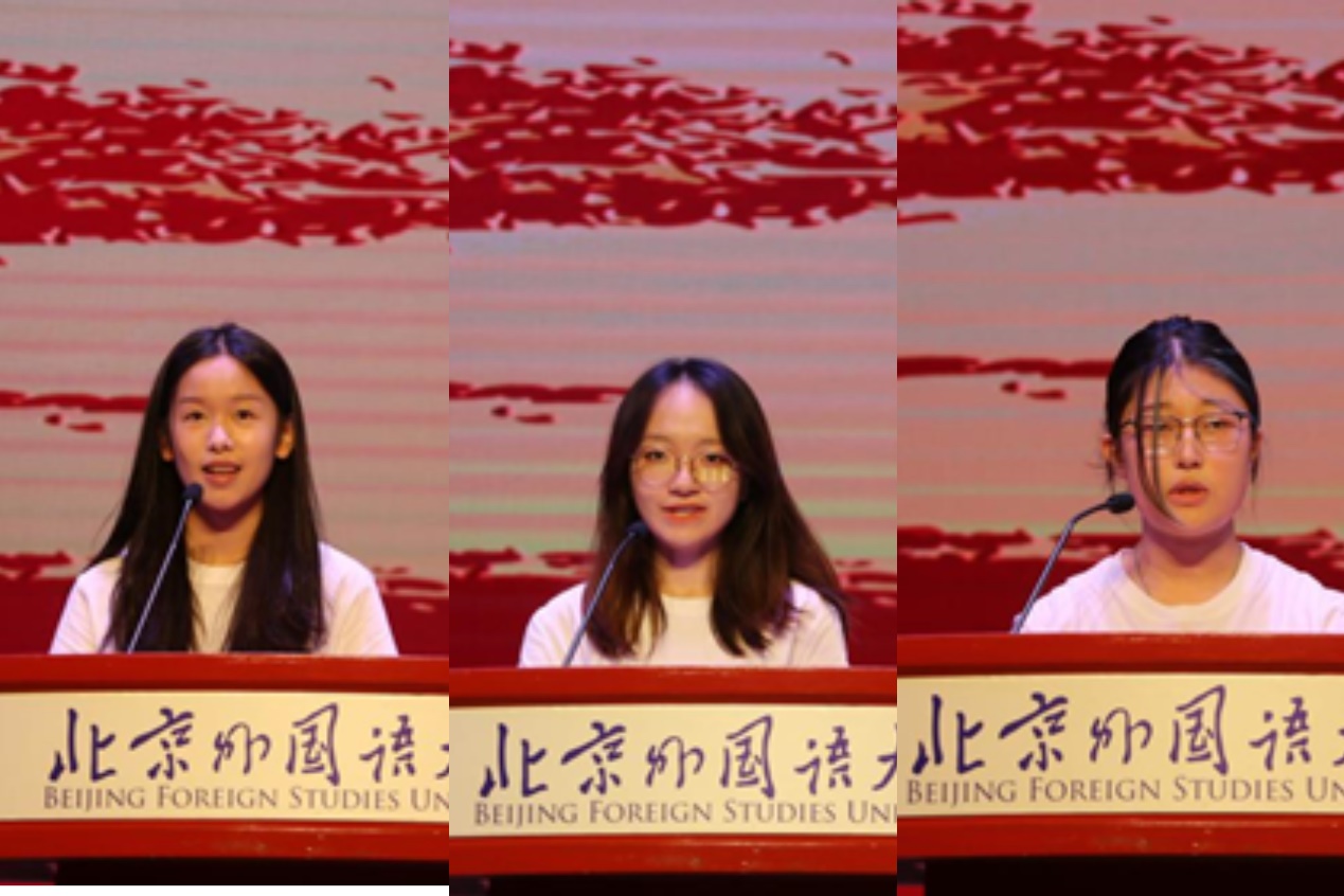 2024级本科新生代表方樱频同学则以家国情怀为主题,分享了自己的三点愿景:家国情怀,根植心间;立足中国,融通世界;锤炼专业,筑梦未来。她勉励同学们心怀国家、放眼世界,不断提升自己的专业能力与素养。2024级硕士新生江涵伟同学则强调了培养思辨精神和判断能力的重要性,鼓励大家提升自身的专业技能。国际项目班新生代表马悦晨同学提出,无论身在何处,北外英院学子都应牢记自己的根与魂,胸怀祖国,放眼全球。