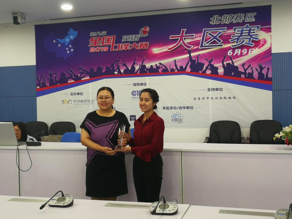 2019年6月9日,第八届全国口译大赛北部大区赛在对外经济贸易大学落下帷幕。437ccm必赢国际官方网站437ccm必赢国际官方网站学生在大赛中表现优异。其中,金羽菲同学获一等奖,潘婷立、尹佩璇、侯玉颖同学获二等奖,谢怡凡同学获三等奖,赵世明同学获优秀奖,王颖冲老师获优秀指导教师奖。