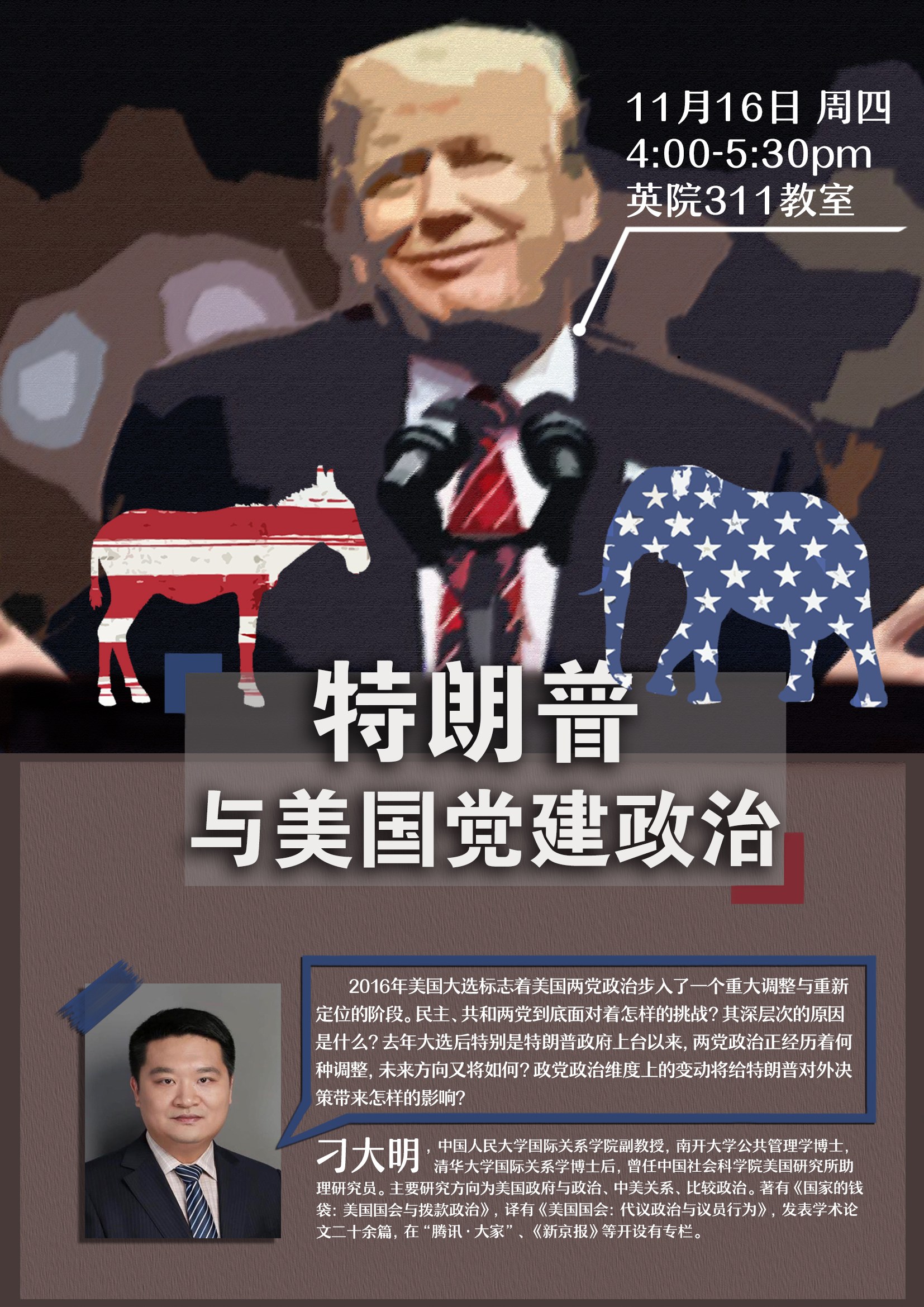 ——他们分别从人工智能时代的国际关系研究、国内微博中的朝鲜形象、中美互动与东亚变局、过去五年中国外交回顾与反思、特朗普与美国政党政治、现实主义理论与美国外交战略等角度,为英院的师生呈现了六场极具学术价值、同时紧扣国际关系研究前沿的学术盛宴。