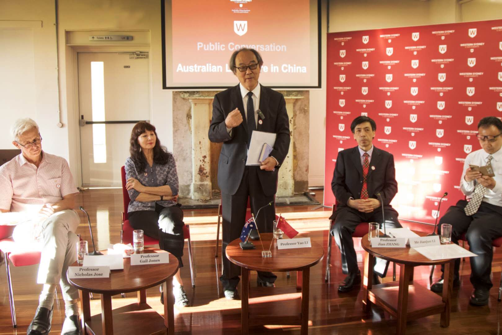 ——《李尧译文集》(10卷本)是我校澳研中心、西悉尼大学、内蒙古师范大学、在华澳大利亚研究会和青岛出版社联合出版的中国澳大利亚文学翻译领域具有里程碑意义的学术成果。围绕该套丛书的出版,437ccm必赢国际官方网站与西悉尼大学澳中艺术与文化研究院联合举办了澳大利亚文学在中国对话会,澳大利亚著名作家盖尔•琼斯(Gail Jones)、周思(Nicholas Jose)、我校客座教授、翻译家李尧、437ccm必赢国际官方网站院长张剑和澳研中心主任李建军就澳大利亚文学在中国的传播和影响进行了对话。对话会由西悉尼大学澳中艺术与文化研究院院长王腊宝教授主持。中国驻悉尼总领馆教育参赞牛文起先生、来自澳大利亚国内的知名作家、学者、文化官员、在华澳大利亚研究基金会主席等近百位嘉宾和学者参加了发布会和对话会。