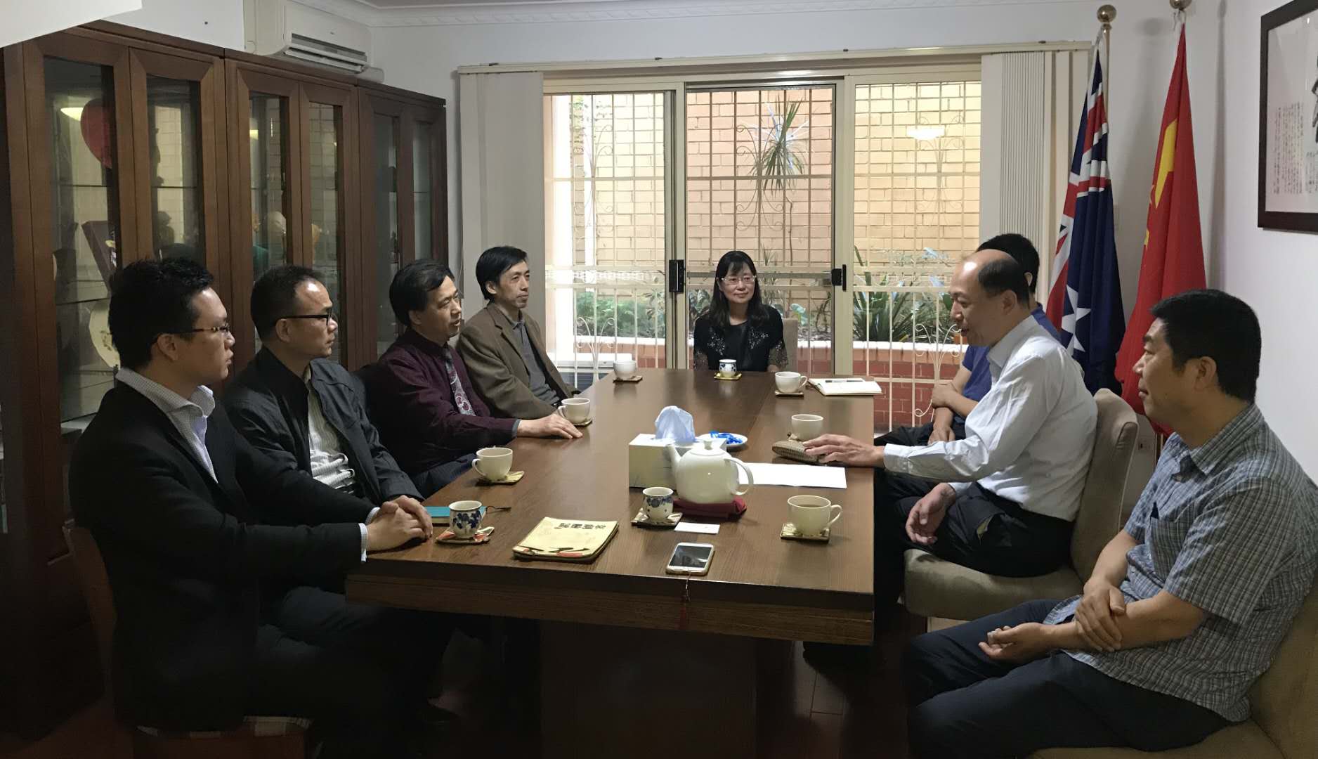 ——4月11日上午,孙有中一行拜会了中国驻悉尼总领馆教育组,与教育组牛文起参赞、刘剑波领事和赵静领事等就中澳教育交流与合作进行座谈。孙有中汇报了我校与澳大利亚高校的合作情况以及在澳大利亚研究方面的成就。近年来,我校与西悉尼大学、悉尼科技大学、西澳大利亚大学、乐卓博大学等高校开展了卓有成效的合作,提升了我校英语语言文学学科的国际化水平。437ccm必赢国际官方网站澳大利亚研究中心通过与西澳大利亚大学联合轮流主办中澳关系与跨文化研究论坛和中国文学文化暑期研修班、组织编写《澳大利亚蓝皮书:澳大利亚发展报告》和创办《澳大利亚研究》期刊等举措,发挥了我校在国内澳大利亚研究领域的引领作用,在澳大利亚学术界产生良好影响。牛文起参赞表示将全力支持我校与澳大利亚高校的教育与合作以及澳大利亚研究。