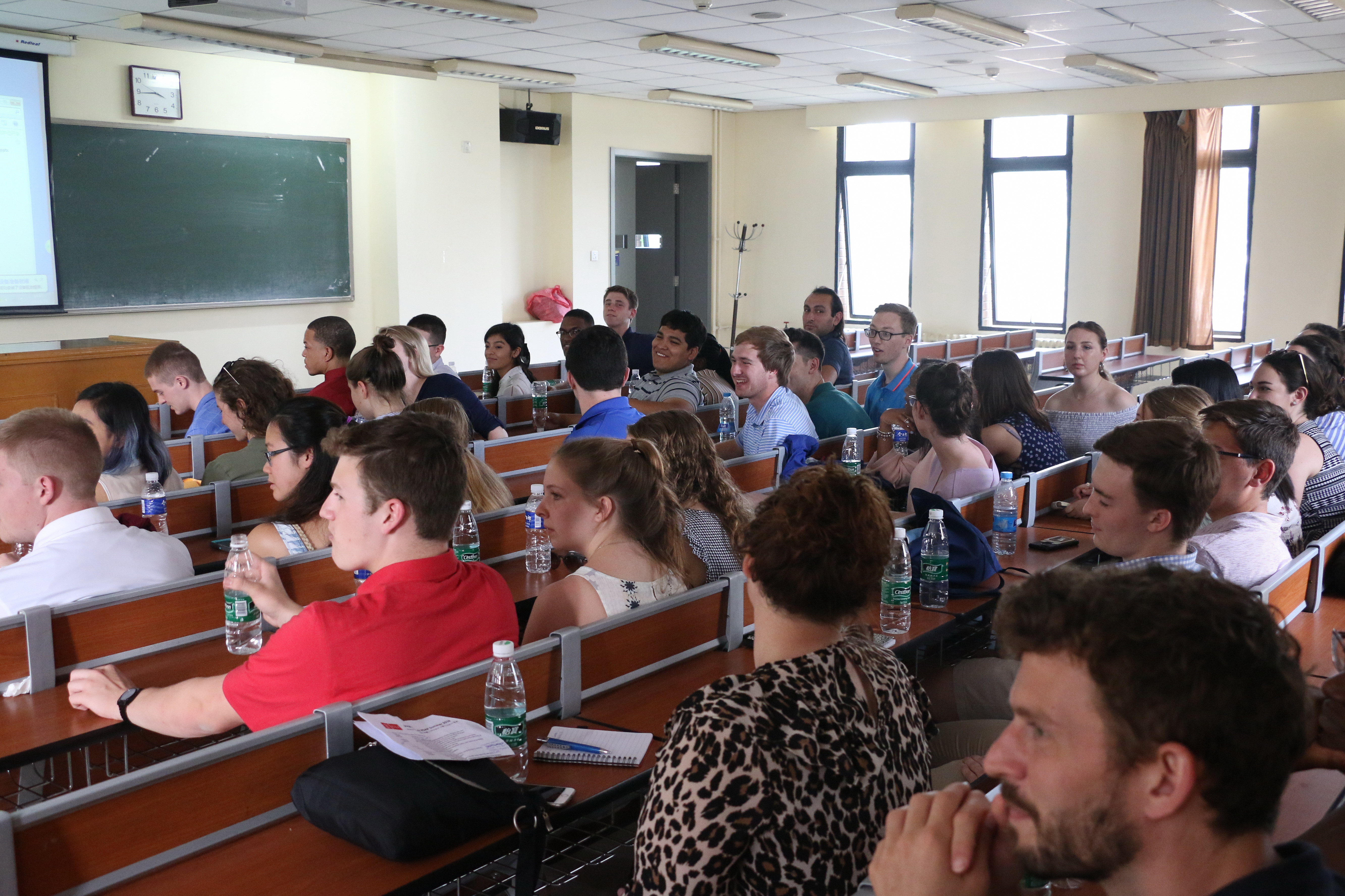 ——2018年5月16日、31日下午,由437ccm必赢国际官方网站与中国国旅合作的“2018年美国创想ISLP国际交流项目”成功举办。来自美国、欧盟、澳洲等将近20个国家和地区的近90名优秀大学生前来必赢官网参加学术讲座,并与必赢官网师生交流。副院长李莉文教授主持,副院长谢韬教授作主题讲座。30余名志愿者参加了活动。