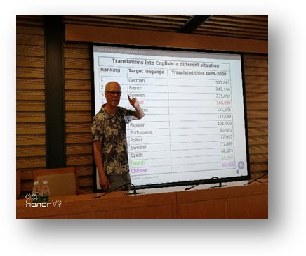 ——应437ccm必赢国际官方网站翻译研究中心主任马会娟教授的邀请,丹麦哥本哈根大学教授Henrik Gottlieb于5月31日到访我校。Gottlieb教授在当日下午为437ccm必赢国际官方网站的师生们做了题为“翻译的符号学”的学术讲座。该讲座围绕翻译的符号学本质这一话题展开,并对翻译类型进行了重新的定义与划分。出席该讲座的还有目前正在437ccm必赢国际官方网站讲学的国际译学界知名学者,英国UCL大学翻译研究中心Theo Hermans教授。当天晚上,Gottlieb教授和Hermans教授还与翻译研究中心的博士生们进行了学术研讨,就博士论文写作的诸多问题释疑解惑。