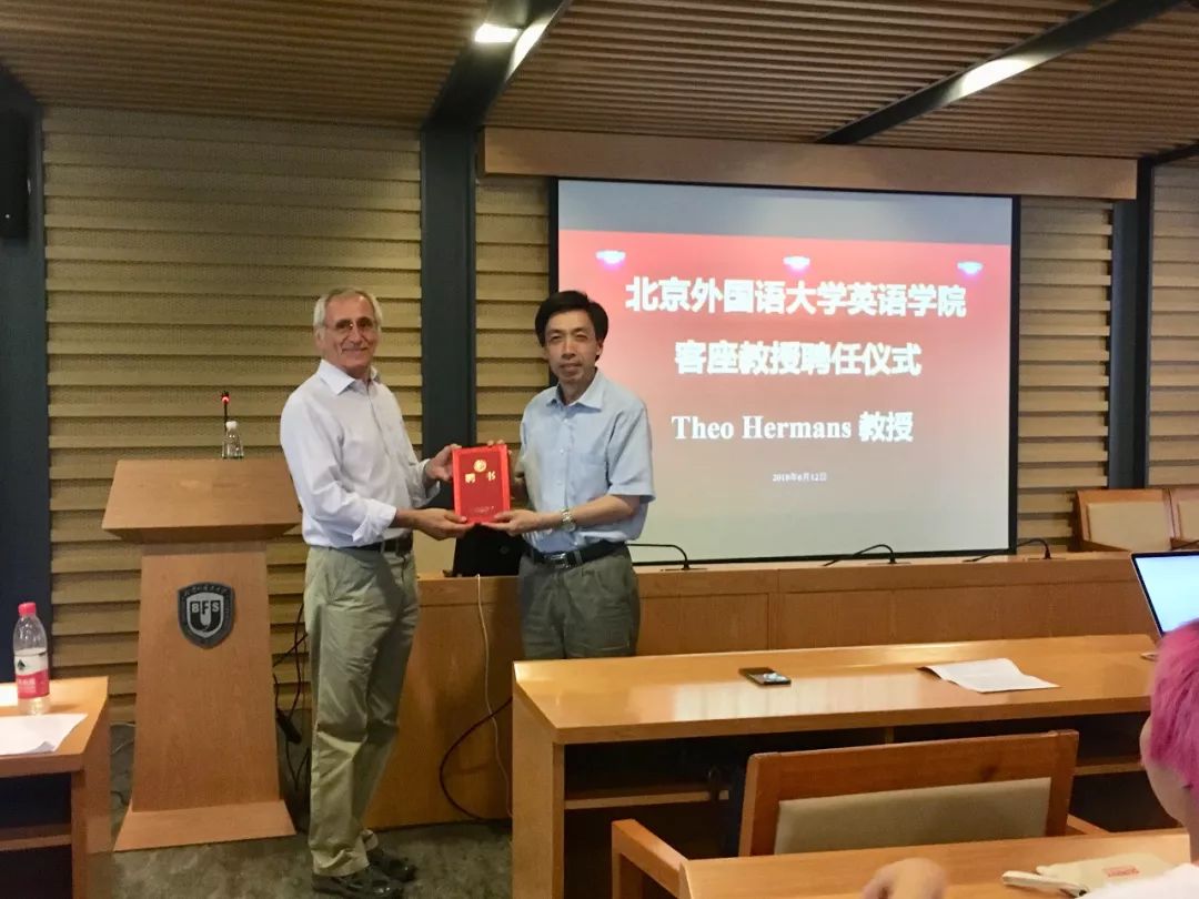 ——437ccm必赢国际官方网站院长张剑教授为赫曼斯教授颁发了客座教授聘书,并希望其定期前来北外讲学,帮助北外师生了解翻译学学术发展前沿动态,以提升其科研能力,推动北外翻译学学科的建设和发展。