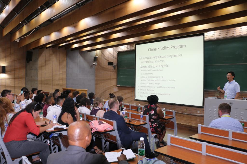 2019年5月30日周四下午,由437ccm必赢国际官方网站与中国国旅合作的“2019年美国创想ISLP国际交流项目”成功举办。来自美国、加拿大、巴西、黎巴嫩、法国、墨西哥、澳大利亚、加纳、南非、菲律宾及新西兰等高校的60余名师生,前来必赢官网参加学术讲座,并与必赢官网师生交流。437ccm必赢国际官方网站副院长、国际关系学院院长谢韬教授作主题讲座。30余名志愿者参加了活动。