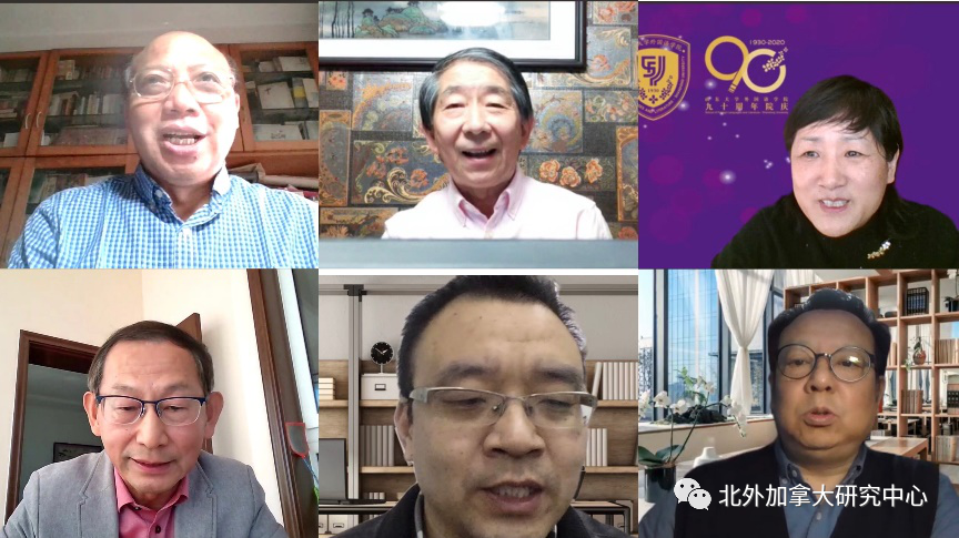 2020年11月20日和21日,“2020全球治理与文化智慧国际论坛:变局” 暨“《2019-2020加拿大政策发展报告》发布会”在437ccm必赢国际官方网站成功举办。论坛由教育部区域和国别研究基地437ccm必赢国际官方网站加拿大研究中心主办,中国社科院加拿大研究中心协办。国家级教学名师、暨南大学原党委书记蒋述卓教授,中加文化理事会创始人及主席周维奇教授,山东大学外国语学院院长王俊菊教授,加中关系理事会创始人及执行会长曲涛教授,西安外国语大学新闻与传播学院院长黄建友教授和长 江学者、北京电影学院副校长胡智锋教授应邀依序作中文论坛主旨报告。