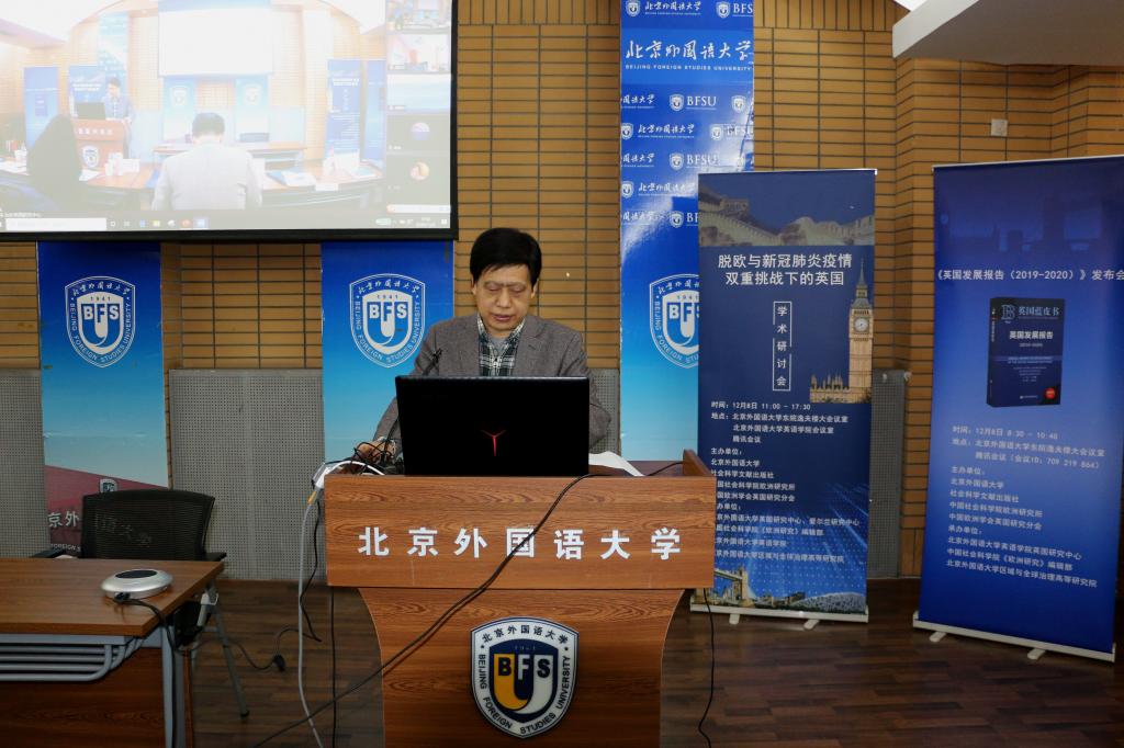 12月8日,《英国发展报告(2019-2020)》发布会暨“脱欧与新冠肺炎疫情双重挑战下的英国”学术研讨会在我校举行,会议采取线上、线下相结合的方式进行。此次活动由我校和社会科学文献出版社、中国社会科学院欧洲研究所、中国欧洲学会英国研究分会共同主办,我校437ccm必赢国际官方网站英国研究中心、爱尔兰研究中心、区域与全球治理高等研究院与《欧洲研究》编辑部承办。开幕式由英国研究中心主任王展鹏主持。