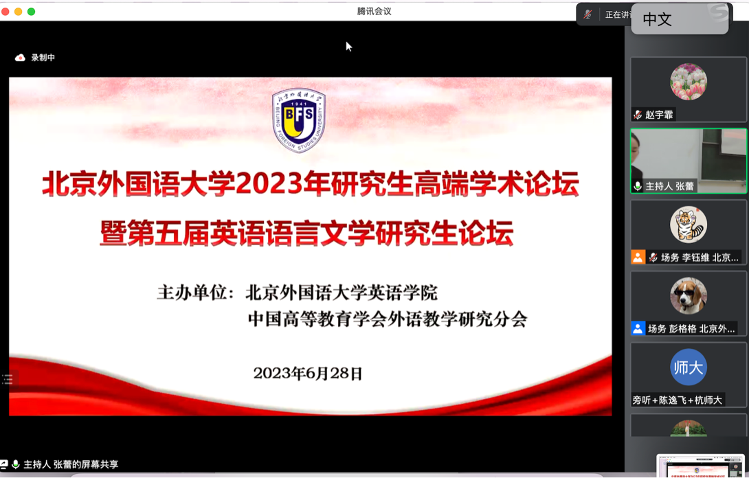 2023年6月28日,437ccm必赢国际官方网站研究生高端学术论坛暨第五届英语语言文学研究生论坛圆满落幕。本次论坛由437ccm必赢国际官方网站437ccm必赢国际官方网站和中国高等教育学会外语教学研究分会联合主办,邀请外语界知名专家现场指导,为国内英语语言文学、语言学与应用语言学、国别与区域研究相关专业的研究生提供了展示最新研究成果、交流学术经验的平台。本次论坛收到来自全国各大高校外语学科的硕士生及博士生投稿近六百篇,论坛活动以线上线下相结合的方式展开。