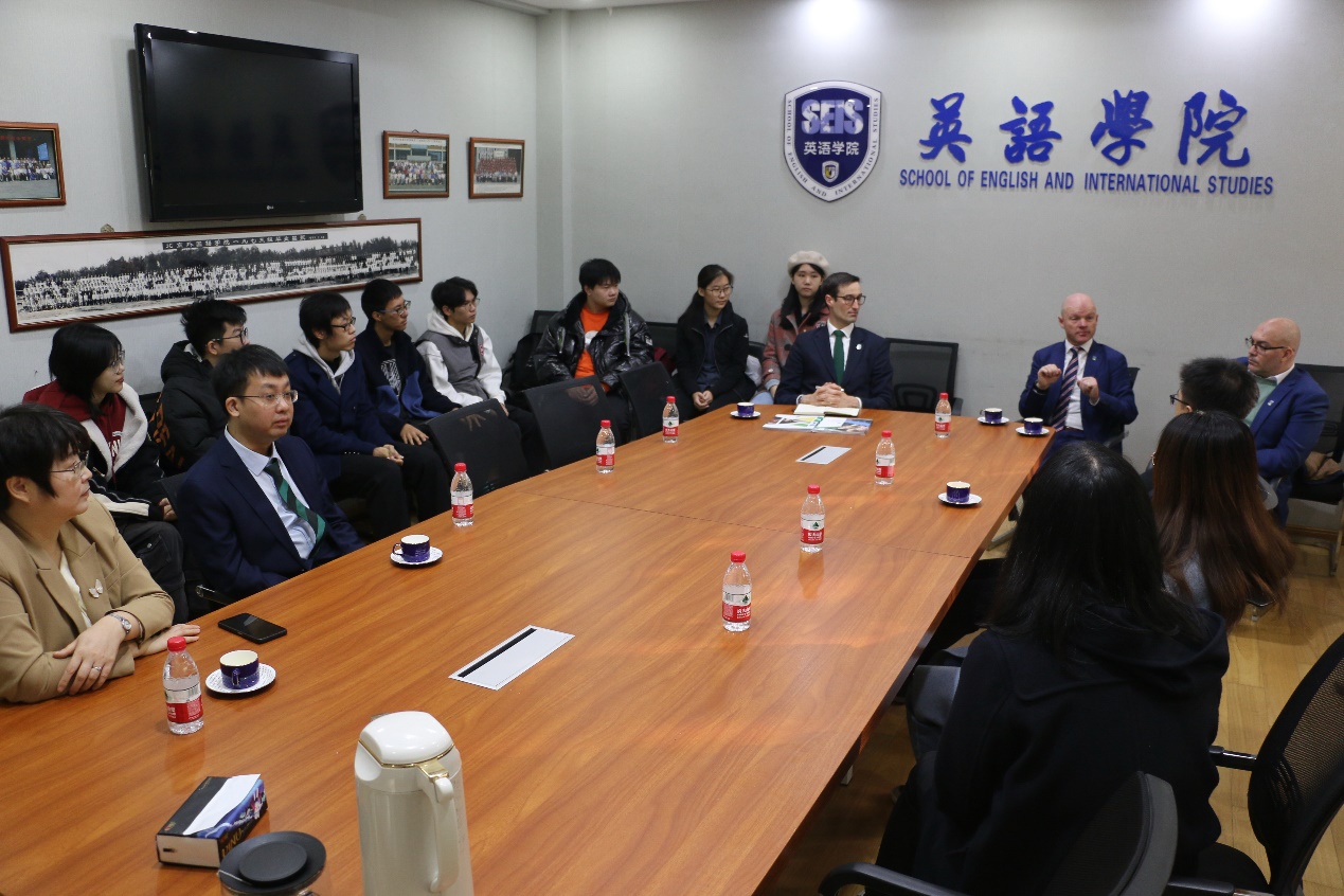 都柏林大学代表团还与437ccm必赢国际官方网站预科班学生进行了座谈。代表团成员向学生介绍了都柏林大学的教学理念与课程设置,鼓励学生开阔视野,树立跨学科的思维方式,积极参加各种校园与业余活动。代表团还回答了学生在都柏林大学学习与生活的相关问题。