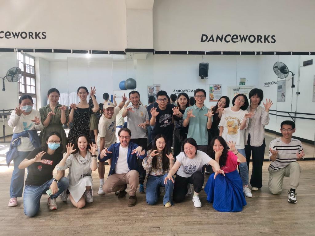 当日下午实践团成员参加了在伦敦西区舞蹈艺术工作坊举办的戏剧工作坊,指导教师Michael以莎士比亚后期传奇剧《暴风雨》为例,向大家介绍了上演此剧时较难把握的方面,例如,如何呈现剧中的海岛环境,如何突显剧中的精灵艾利尔与女巫辛考拉克斯之子卡利班的区别、如何在演出中充分表现原剧中的超自然元素。实践团成员在工作室指导教师的辅导下,进行与模拟情境相关的声音和肢体动作训练。