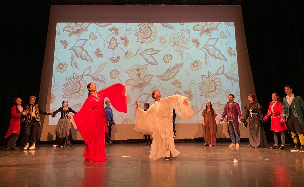 8月25日晚七点,实践团成员在剑桥岔道口演剧厅为观众带来了一场包含《茉莉花》《摘棉花》《梦回敦煌》、莎剧《第十二夜》等九个中英文节目,充分展现了北外师生的语言功底和文艺素养。此次演出共有六个节目包含舞蹈元素,团队中负责舞蹈的同学在演出前参加了Bolly Bhangra Fit Dance Class的东方舞特训,这家工作室教舞者以丰富多样的手语来与动作配合,为舞者在正式演出中自然优美地传情达意提供了思路。