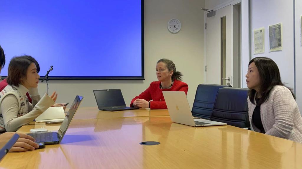 随后实践团一行与科克大学国际处负责人进行座谈,科克大学北京代表处主任张蓓、副主任李鹏出席本次座谈会。科克大学国际处负责人对科克大学优势学科建设、师资力量、就业前景等本硕联合培养项目的相关情况进行了介绍,她表示希望与437ccm必赢国际官方网站在学术交流、联合办学等方面进行更多的合作。科克大学北京代表处的老师也表示,北外拥有丰富的外语资源优势,希望双方以此次座谈为契机,在暑期交流,海外实践等方面进行合作。最后张珺涵老师对437ccm必赢国际官方网站的办学历史,学科建设,课程设置等进行介绍,就未来双方在留学交换,暑期实践等多方面合作进行商议,为之后双方合作交流打下坚实基础。
