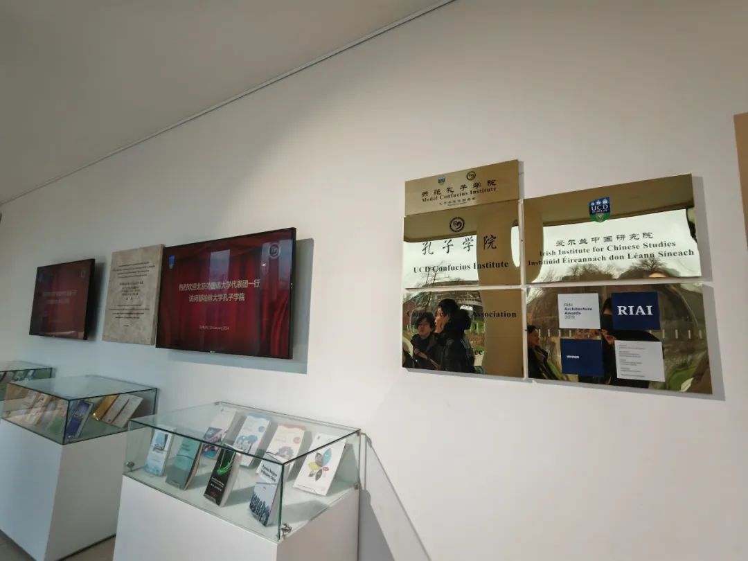 最后,实践团一行前往科克大学孔子学院,科克大学孔子学院院长黄俊逸接待了实践团一行。随后实践团在孔子学院教师的带领下参观了科克大学孔子学院,对正在课堂中的六名新学生开展了现场访谈并送出中国特色礼物。张珺涵老师与宗辰教师则在孔子学院教师的指引下参观了图书馆。