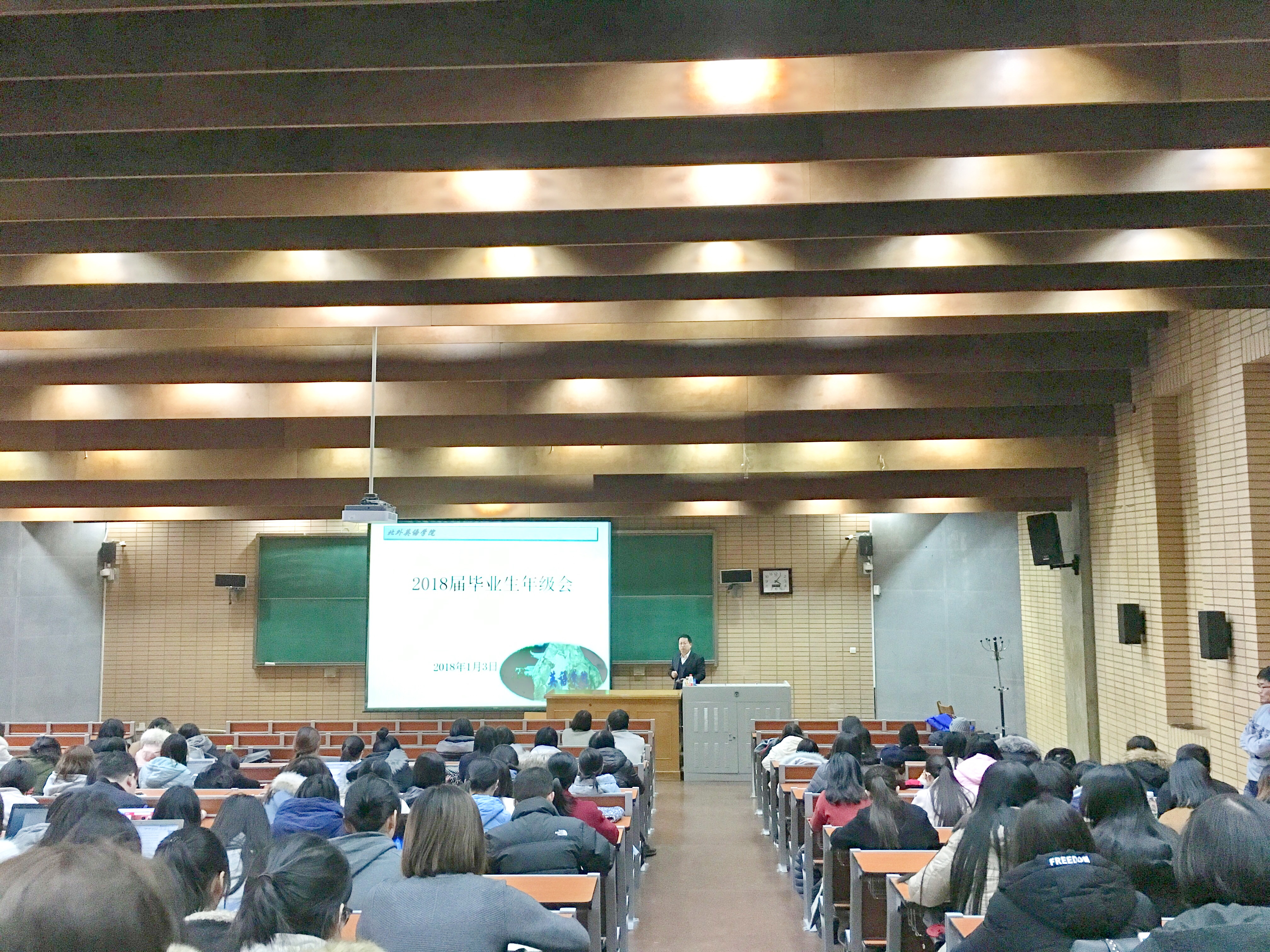 ——2018年1月3日下午,在逸夫楼第一阶梯教室,437ccm必赢国际官方网站召开2018届毕业生年级会。党总支书记路兴、副院长王展鹏及辅导员于承杰参加。2015级英语语言文学、翻译学专业研究生,2016级MTTI专业研究生及2014级本科生300余人参加。