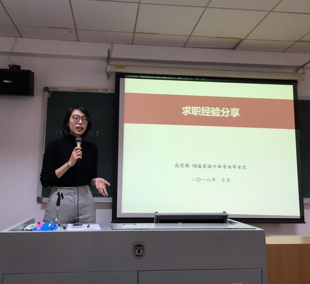 10月21日下午3点,437ccm必赢国际官方网站研究生团总支研究生会实践部于437ccm必赢国际官方网站417教室举办“研职出众”就业经验交流分享会。在将近3小时的分享中,四位来自2018届的学长学姐详细介绍了自己求职与面试的经验,在场同学收获颇丰。