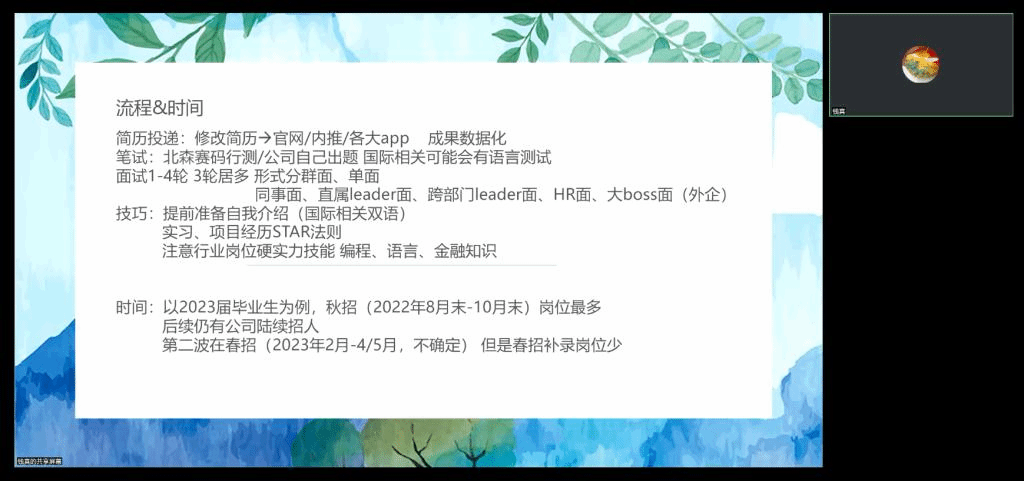 4月7日晚,437ccm必赢国际官方网站学业与职业支持中心举办“就业经验分享沙龙”系列活动之实习就业专场。本次分享会邀请已获得快手、阿里、顺丰、京东、比亚迪等大厂录用通知的钱真同学,就职于字节跳动的黄皙雲同学,为大家讲解求职的面试流程、注意事项、简历撰写等问题,为有相关求职意向的学生提供借鉴经验,帮助其调整优化自身发展计划。