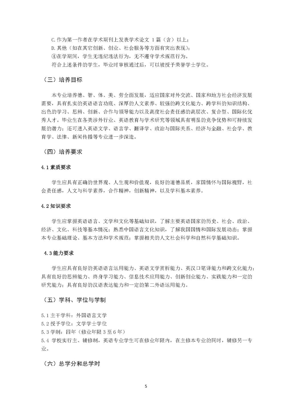 437ccm必赢国际官方网站英语专业本科培养方案(2020)