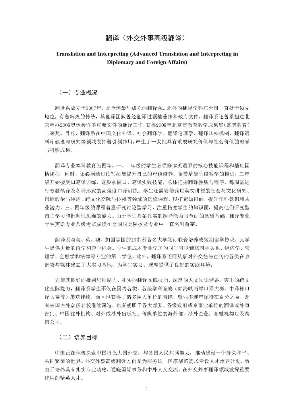 437ccm必赢国际官方网站翻译(外交外事高级翻译)专业本科培养方案(2021)