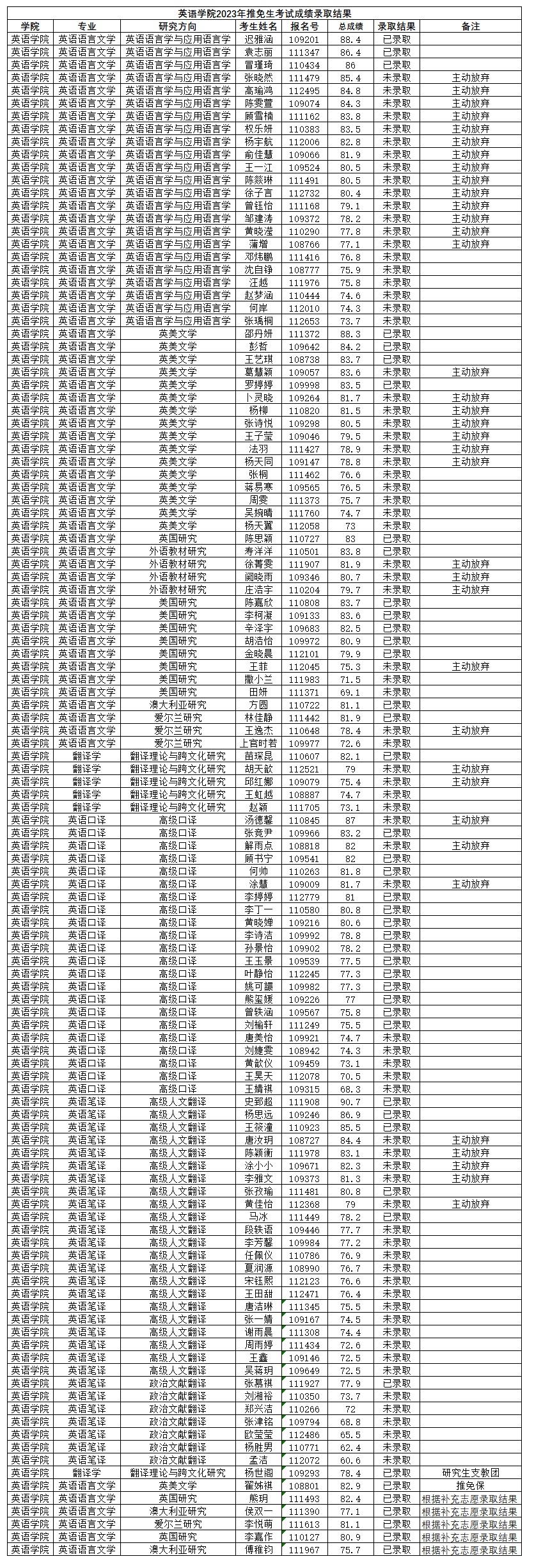 437ccm必赢国际官方网站2023年推免生考试成绩录取结果