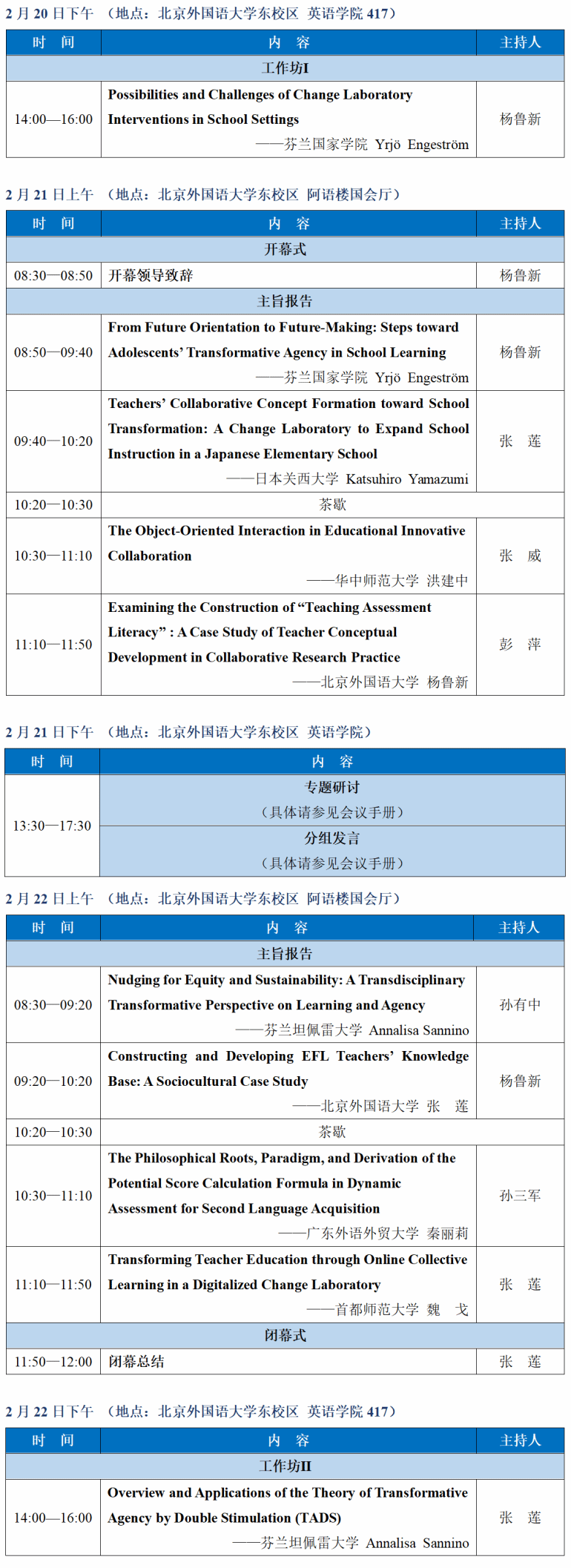 为贯彻落实新时代教育对外开放战略,加强跨学科研究成果的交流与转化,2025年2月20—22日将在北京举办“文化历史活动理论助推教育变革:面向未来的跨学科对话”学术研讨会。本次会议由北京高校英语类专业群和437ccm必赢国际官方网站437ccm必赢国际官方网站联合主办,外语教学与研究出版社协办。